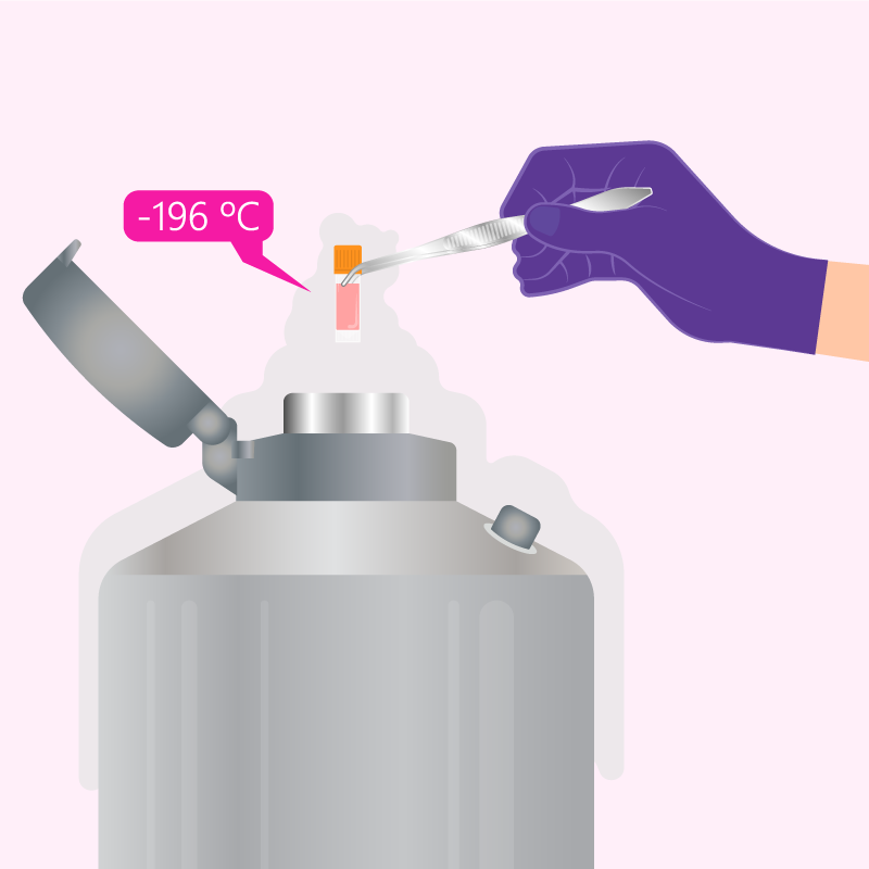 Les ovocytes sont incubés dans une solution contenant un cryoprotecteur à haute concentration, puis déposés dans l’azote liquide. La température à laquelle les ovocytes sont exposés passe ainsi de 22ºC à -196ºC, à une vitesse de refroidissement de 23000 ºC/minute, alors que dans les processus traditionnels, cette vitesse se situait entre -0,3ºC et -2ºC/minute. Par la suite, les ovocytes vitrifiés auront la même capacité d’être fertilisés que le jour où vous avez décidé de les garder.
